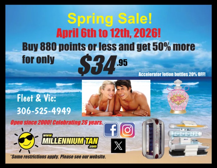 Millennium Tanning now celebrating our 27th year in business in Regina with many to come.